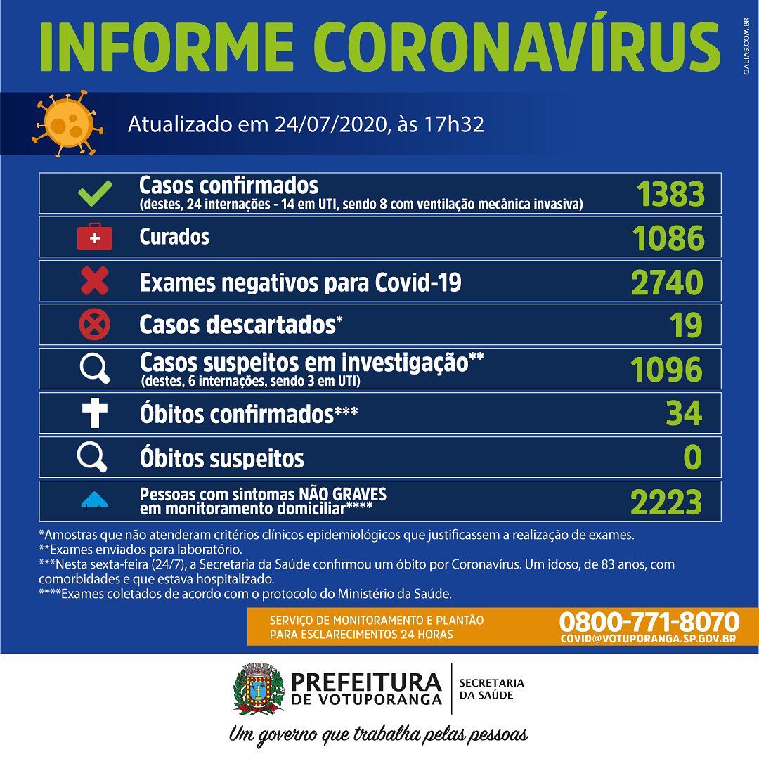 Votuporanga tem mais um óbito e chega a 1.383 casos de coronavírus