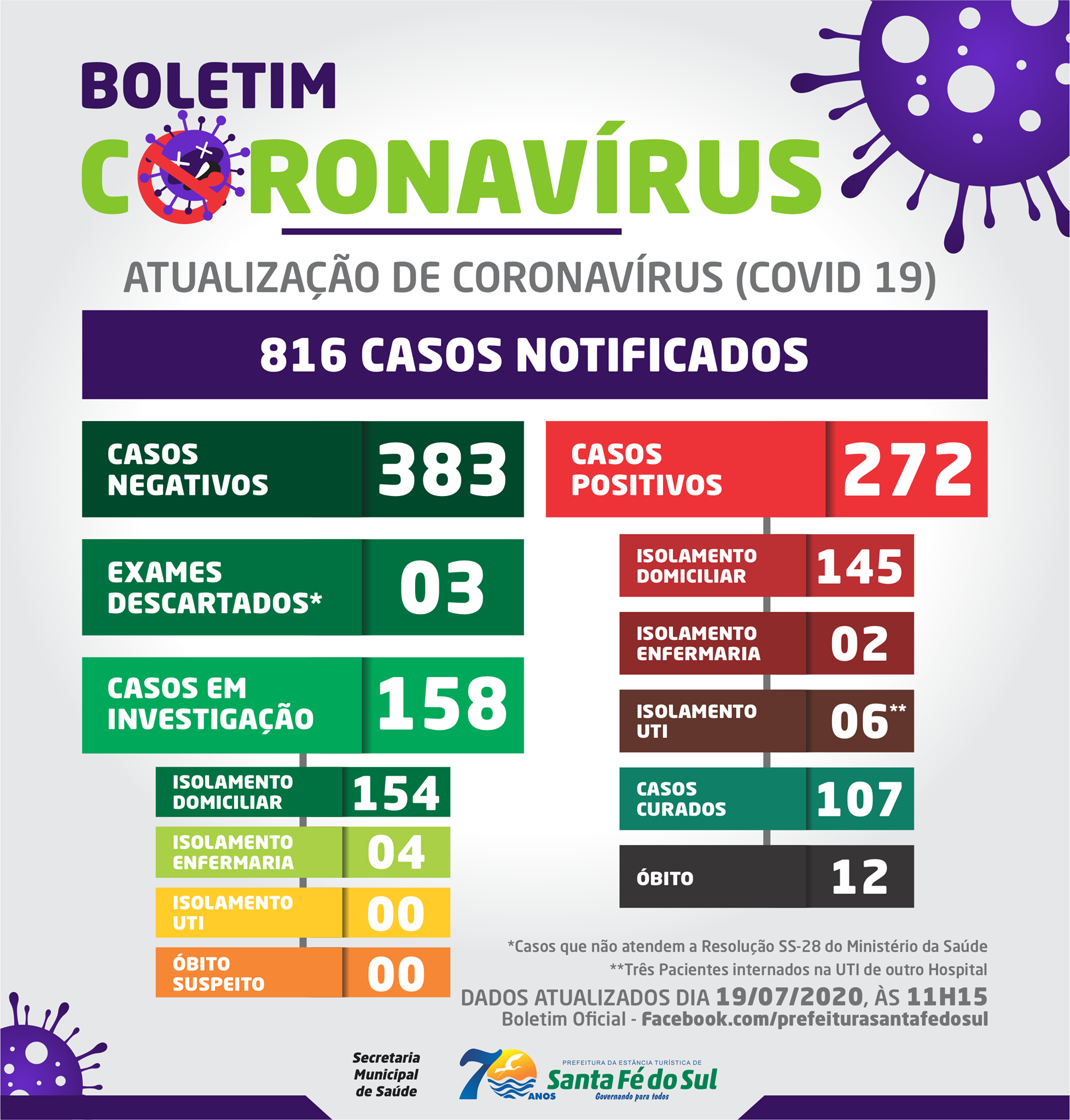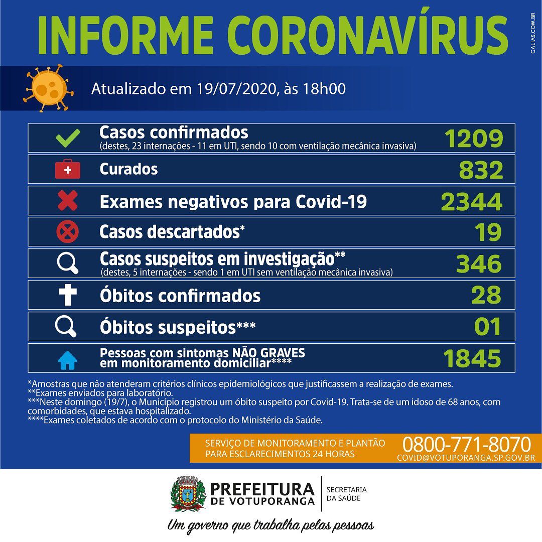 Município tem 1.209 casos confirmados, com 832 curados