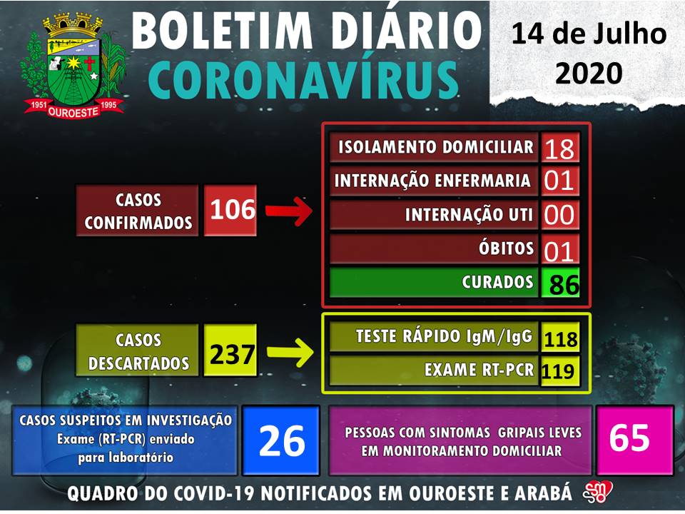 Ouroeste ultrapassa os 100 casos de coronavírus