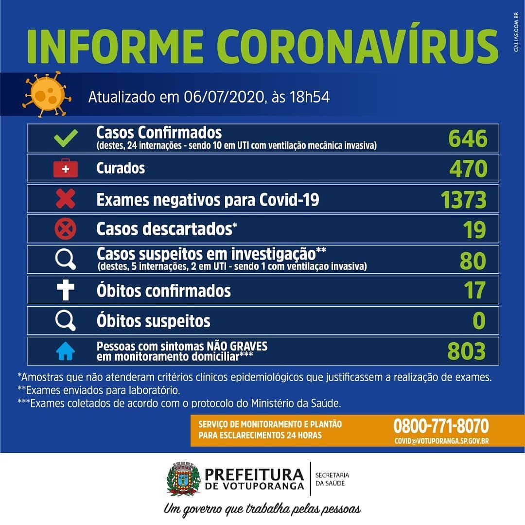 O município tem 646 casos confirmados, com 470 curados
