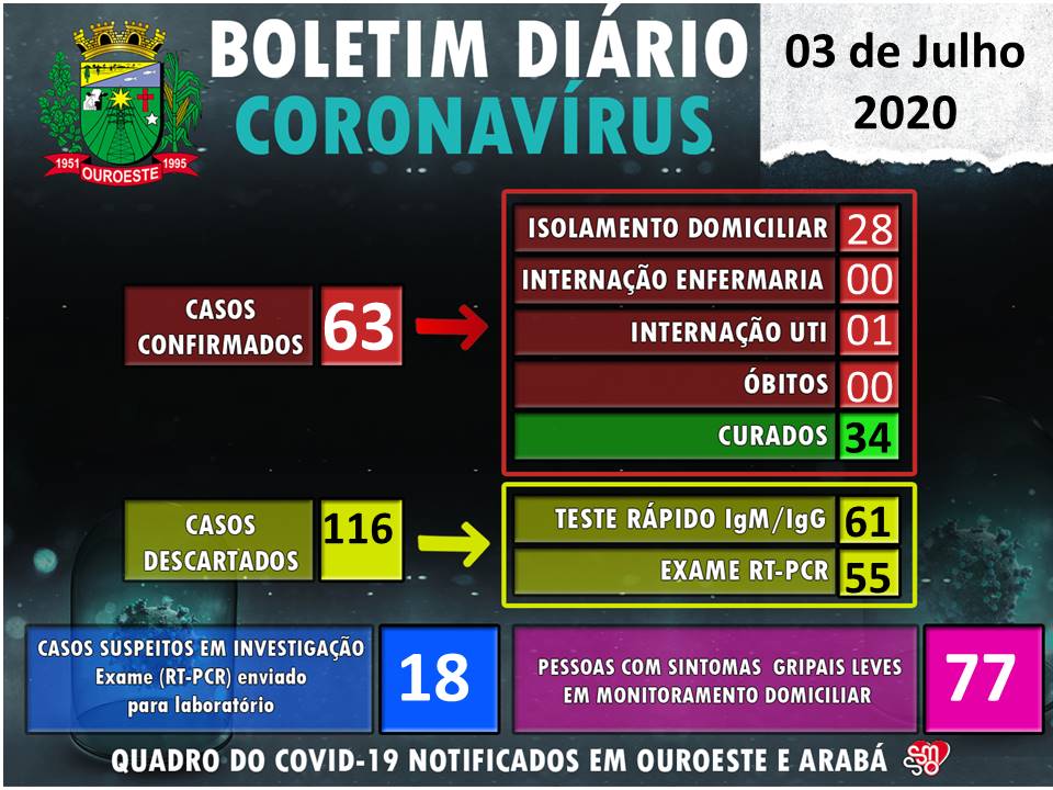 Município chegou à marca de 63 testes positivos da doença