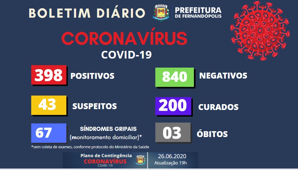 Fernandópolis tem quase 400 casos de coronavírus e 200 curados