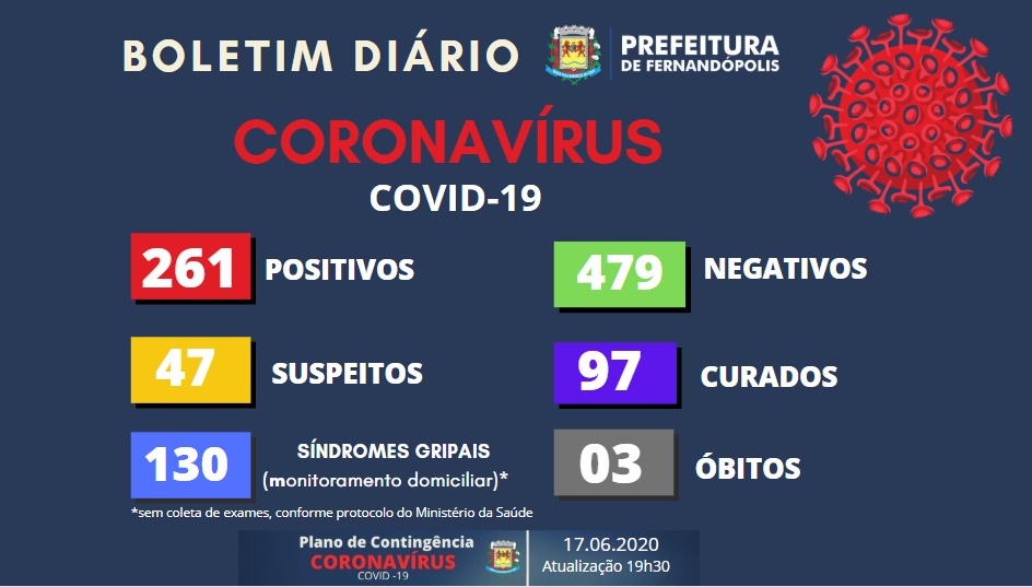 Fernandópolis tem 11 novos casos de coronavírus e totaliza 261