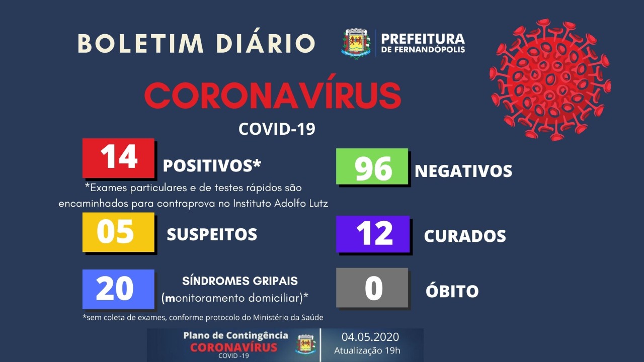 12 dos 14 casos de covid-19 em Fernandópolis, já estão curados