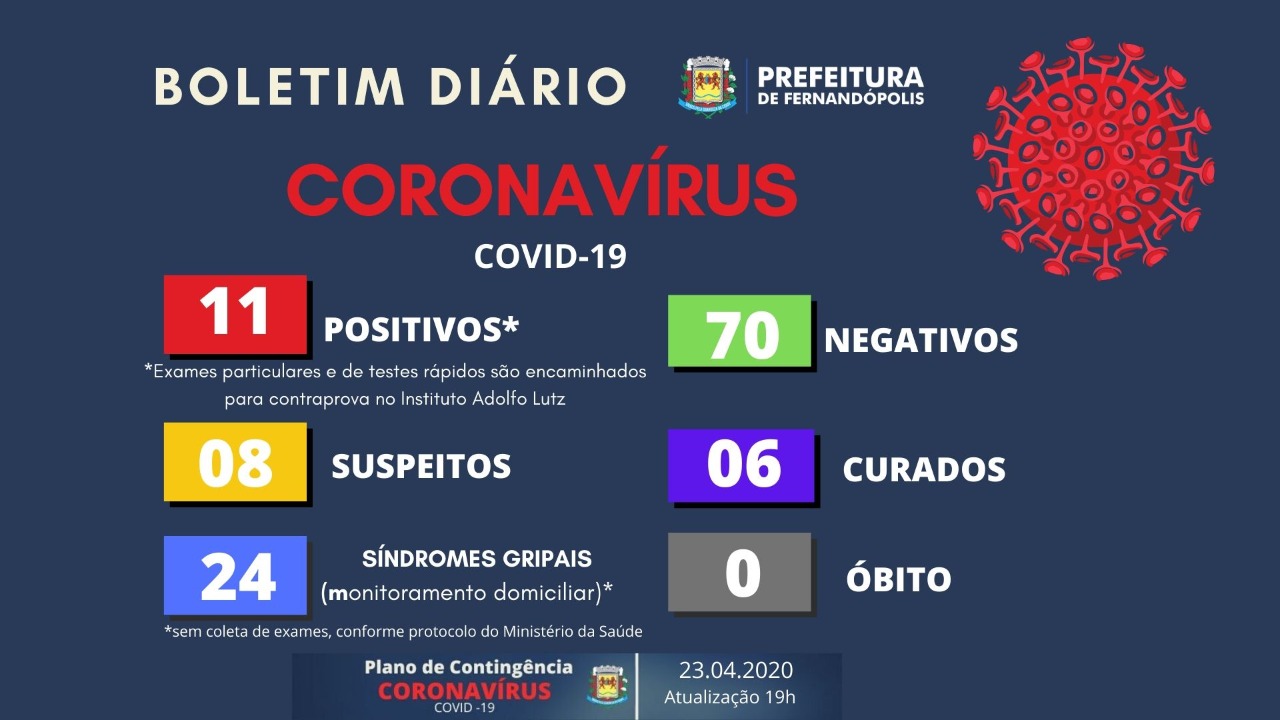 Fernandópolis continua com 11 casos positivos e 70 testes negativos pa