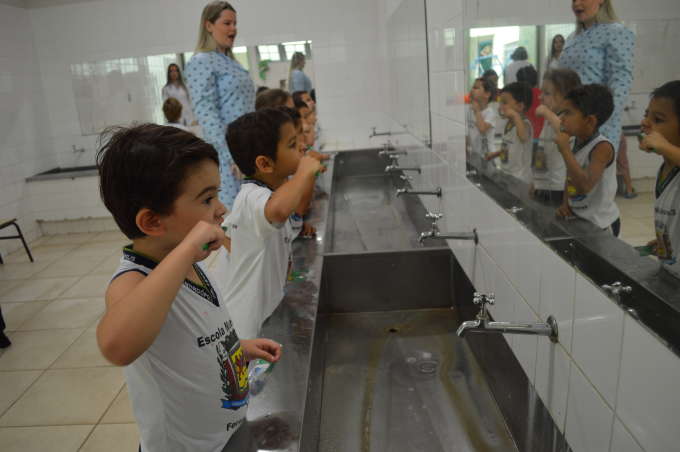 Dentistas orientam crianças a fazer escovação correta
