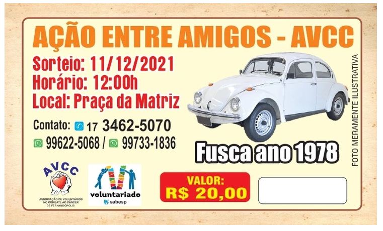 AVCC Fernandópolis faz rifa de um Fusca ano 1978