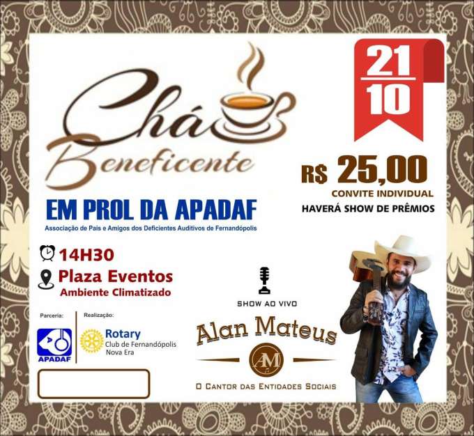 Chá Beneficente em prol a APADAF acontece no dia 21 de outubro