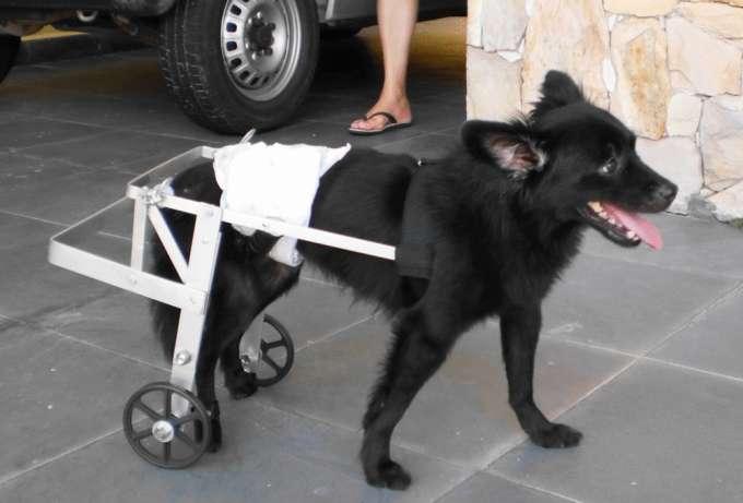 Cachorro que seria sacrificado ganha cadeira de rodas e volta a andar
