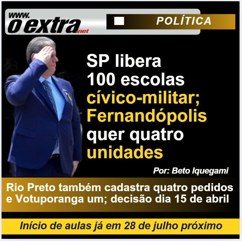 SP libera 100 escolas cívico-militar; Fernandópolis quer 4 unidades