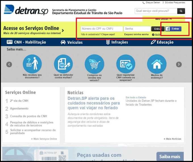 Motoristas podem acessar serviços online do Detran através do Facebo