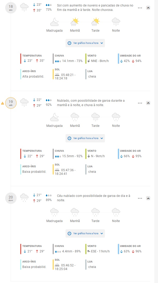 Defesa Civil alerta para condições meteorológicas no final de semana
