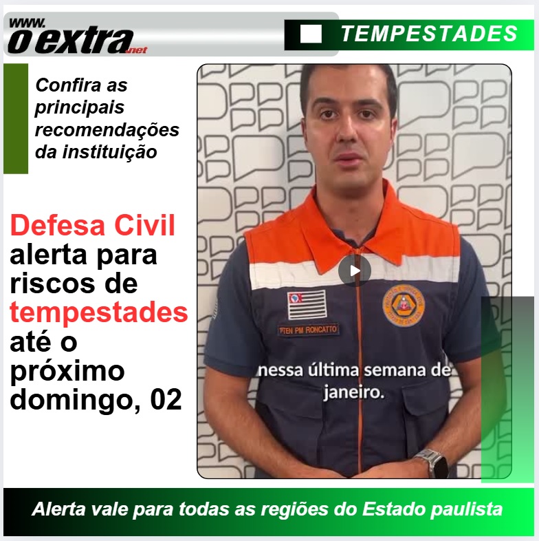 Defesa Civil alerta para riscos de tempestades até domingo, 02