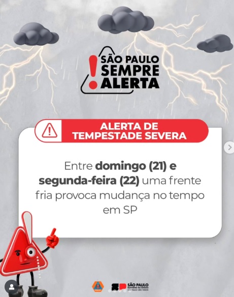 Defesa Civil de SP alerta para fortes chuvas em todo estado