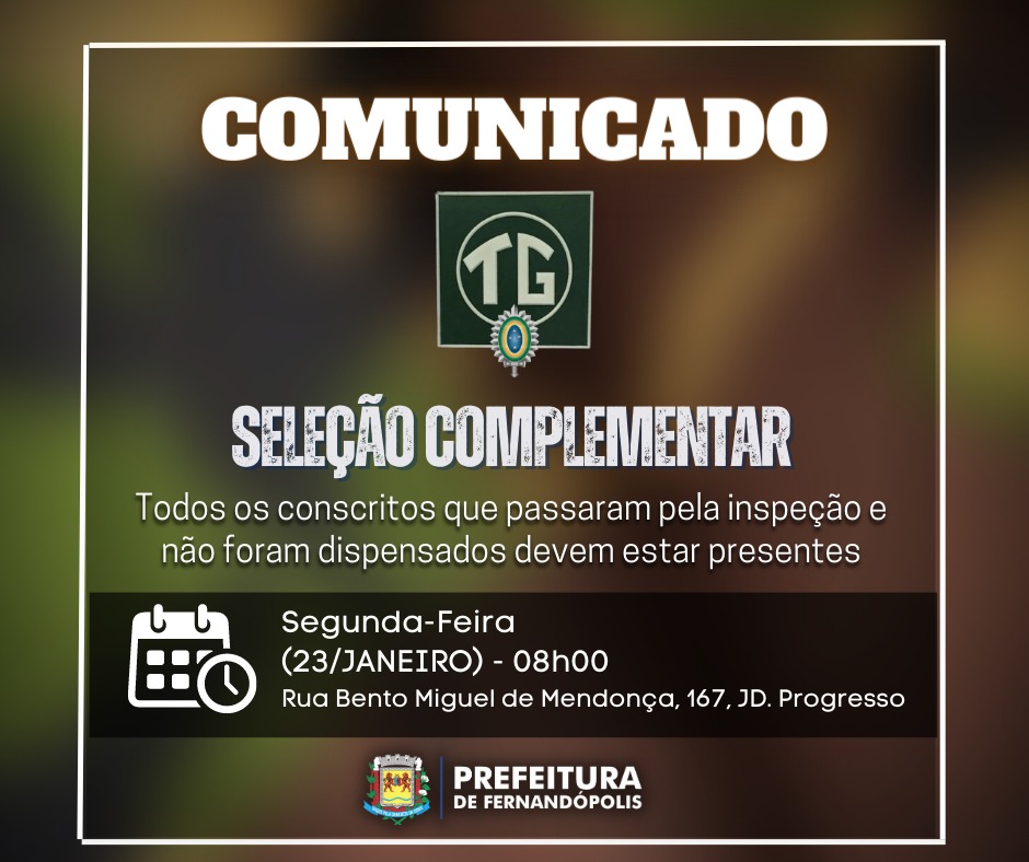 TG convoca alistados em 2022 para Seleção Complementar no dia 23