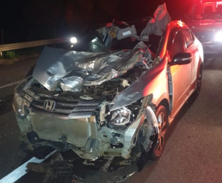 Animal na pista causa grave acidente perto do Posto Gramadão