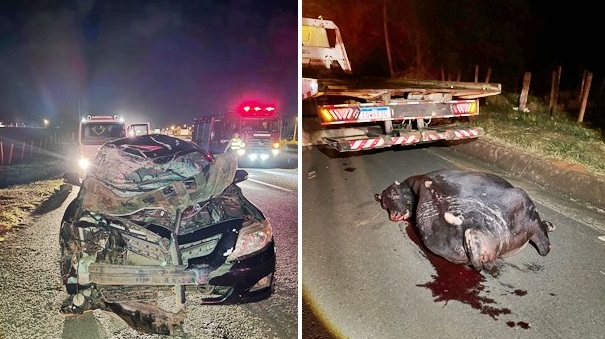 Acidente com boi e dois carros em Fernandópolis deixa quatro feridos