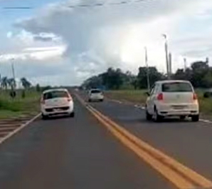 Um dos carros invadiu a pista contrária em local de ultrapassagem proibida
