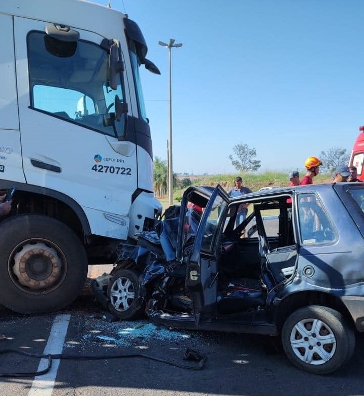 Acidente entre canavieiro e Fiat Uno deixa motorista em estado grave