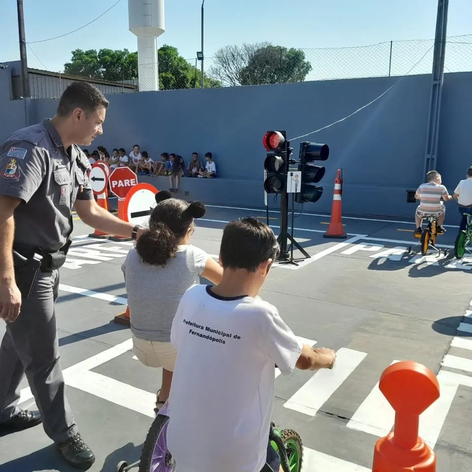 Alunos da rede municipal percorrem um minicircuito montado pela SEMUTRAN