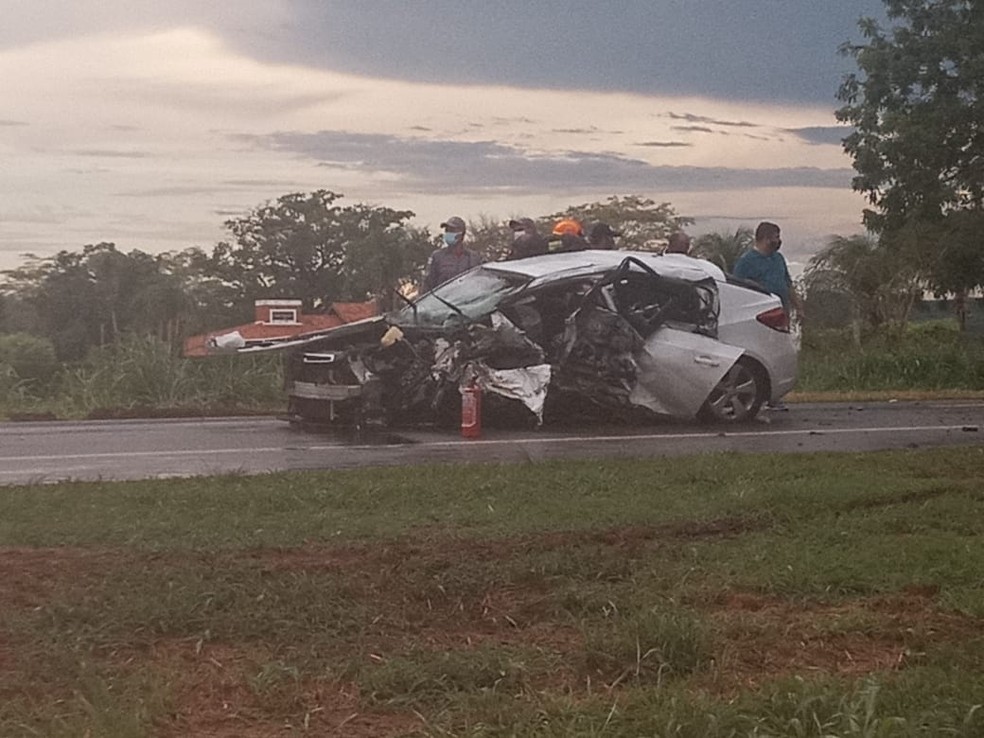 Carro bateu de frente com um caminhão e matou pai, mãe e filha de 3 anos