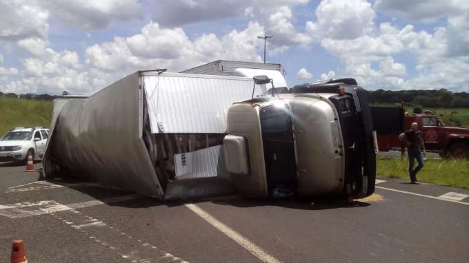 Caminhão tomba no trevo de Valentim Gentil