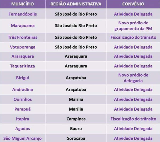 Secretaria da Segurança Pública de SP firmou parcerias com 13 municípios
