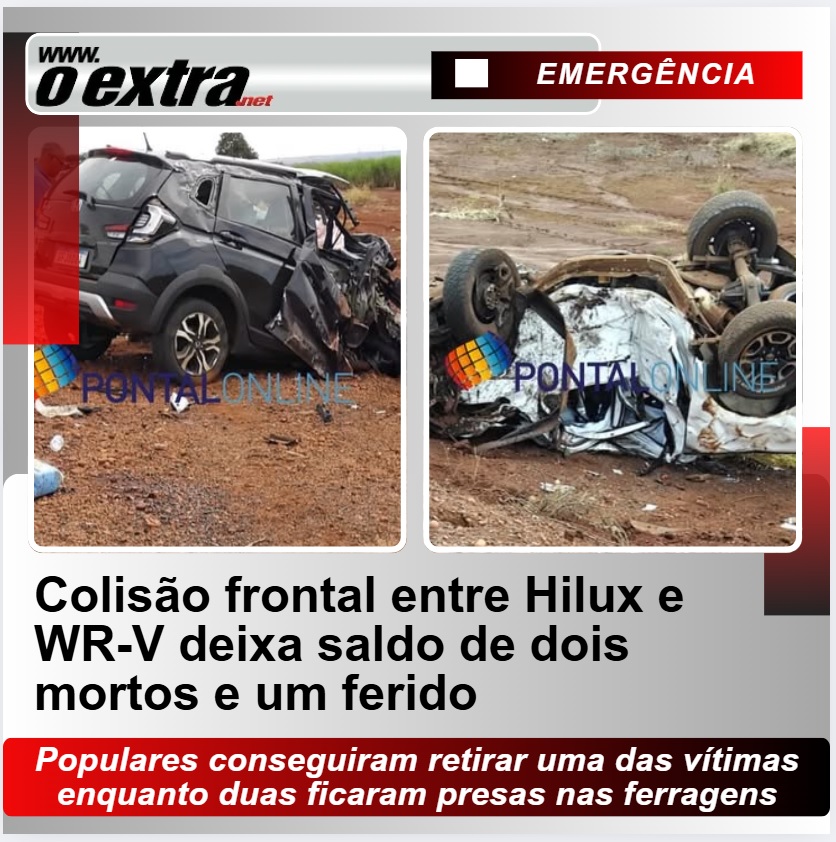 Colisão frontal entre Hilux e WR-V deixa dois mortos e um ferido