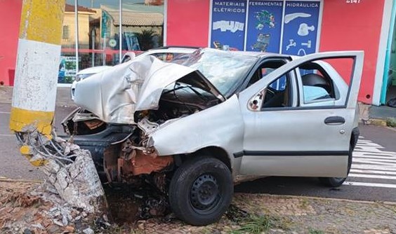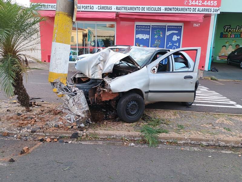 Condutora suspeita de dirigir alcoolizada causou colisão contra poste