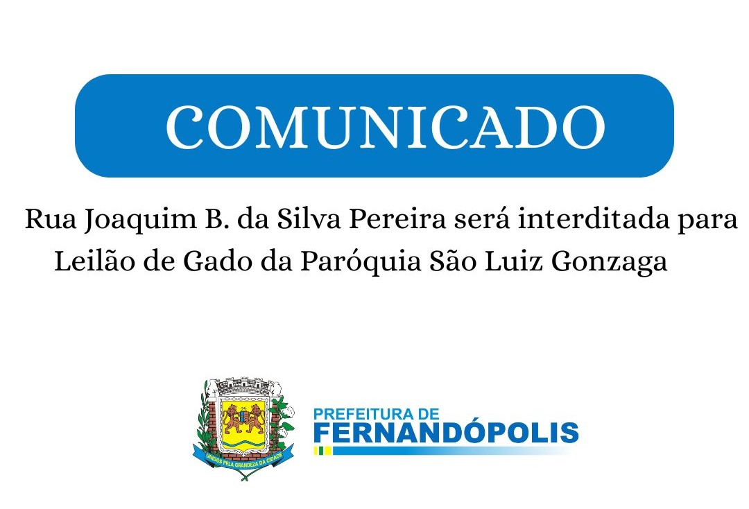 Rua Joaquim B. da Silva Pereira será interditada para Leilão de Gado