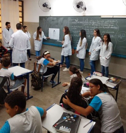 Os estudantes levam conhecimento em diversas áreas da saúde para os alunos