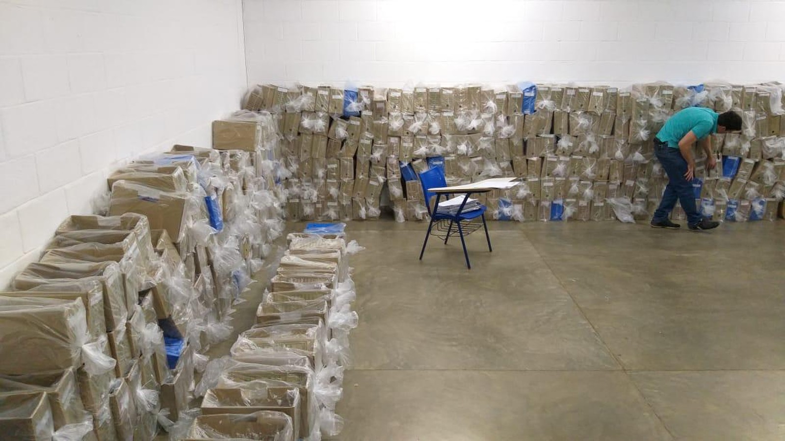 Policiais estiveram no local para recolher papeis que tinham sido solicitados
