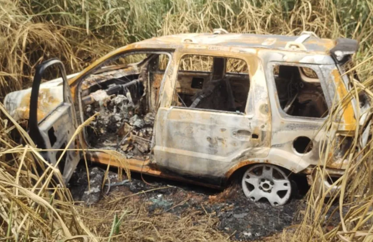 Corpos são encontrados carbonizados dentro de carro em meio a canavial