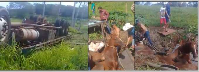 Caminhão que transportava cavalos tomba perto de Valentim