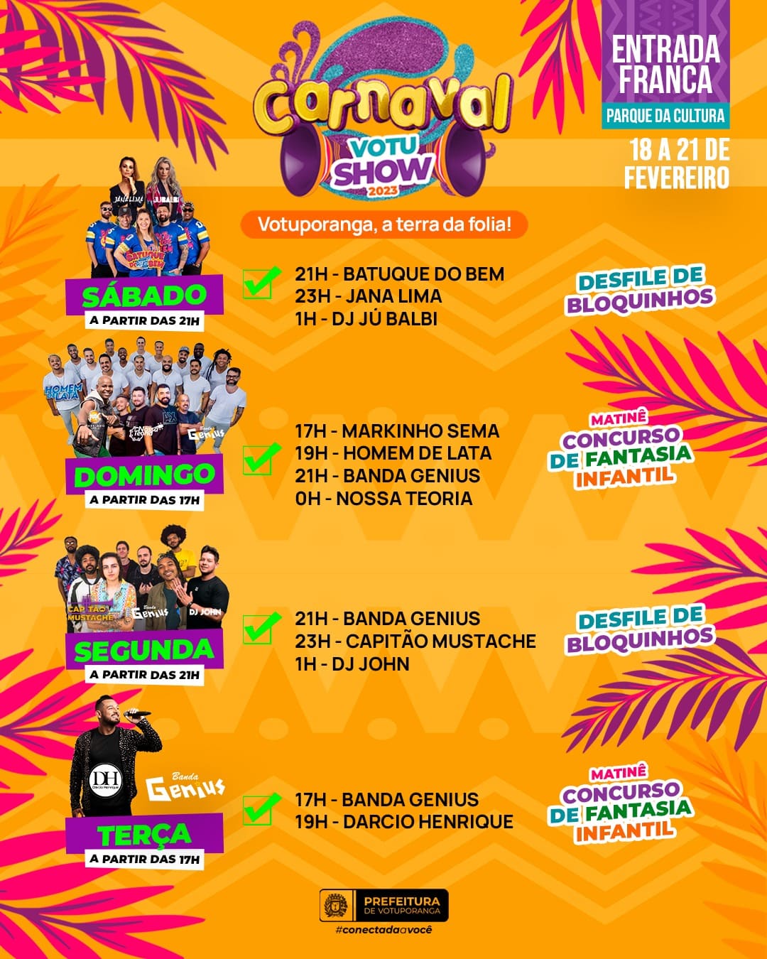 Carnaval Votu Show 2023: Prefeitura divulga programação da festa