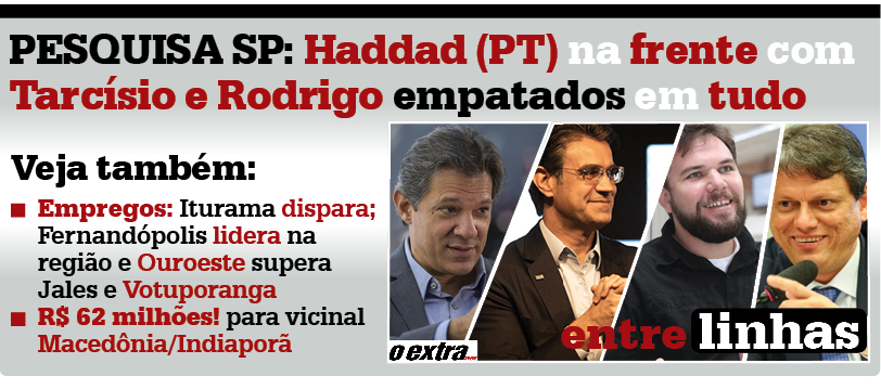 PESQUISA SP: Tarcísio e Rodrigo empatados em tudo; Haddad, com folga,