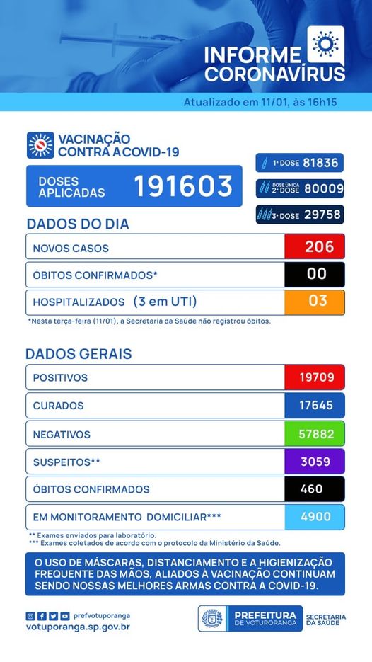 Votuporanga registra 206 novos casos positivos de Covid-19