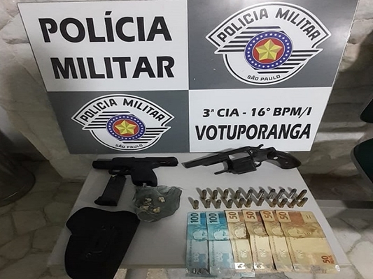 Dois homens e uma mulher são presos com armas e drogas em Votuporanga