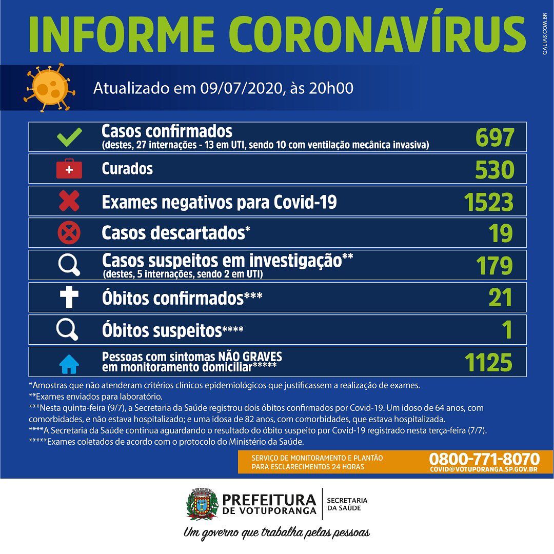 Votuporanga tem 697 casos confirmados, com 530 curados