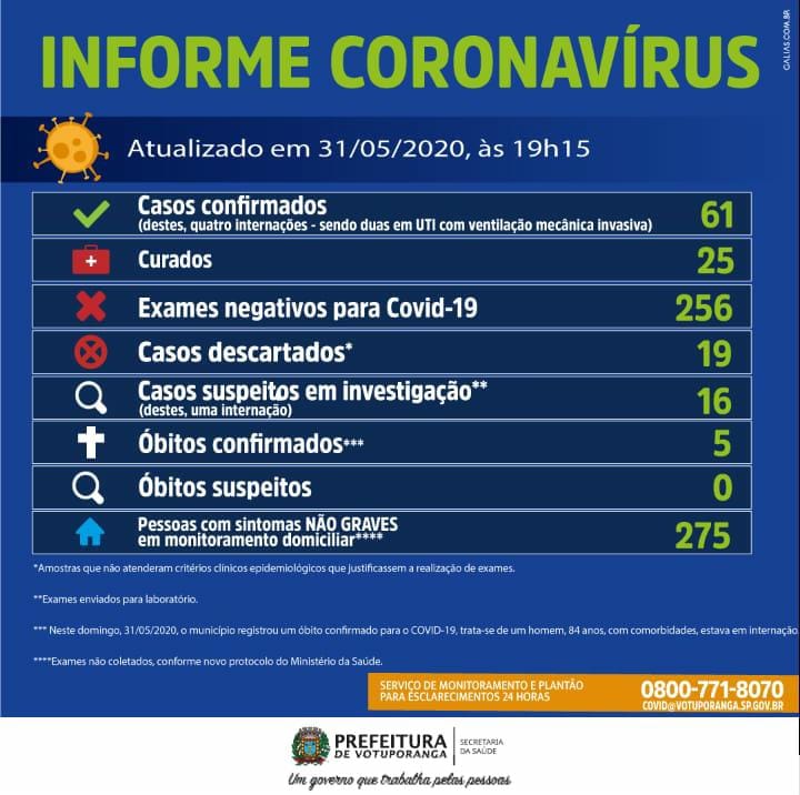 Com os novos casos registrados, o total chega a 65 confirmados e 5 óbitos