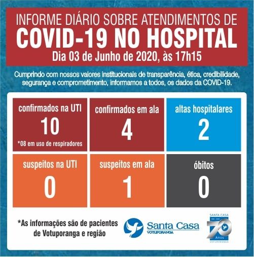 UTI para Covid-19 da Santa Casa de Votuporanga também está 100% lotada