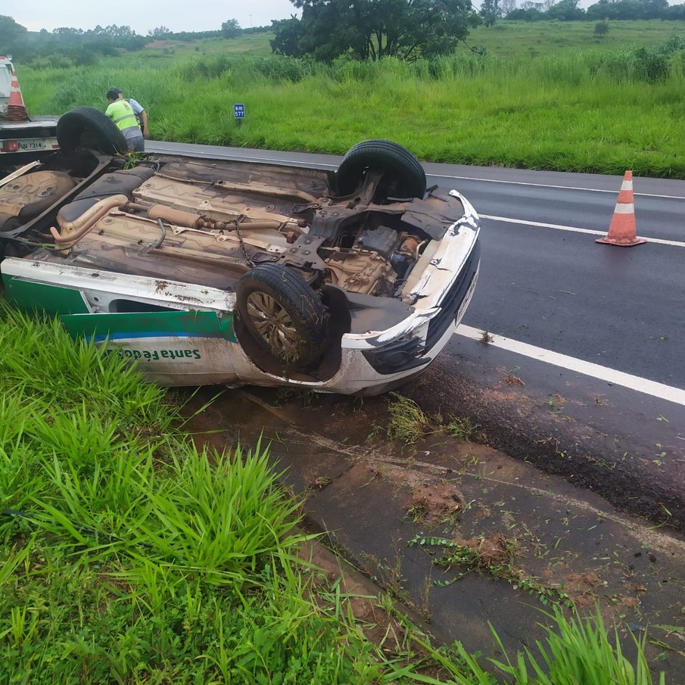 Carro da Prefeitura de Santa Fé do Sul capota em rodovia em Jales